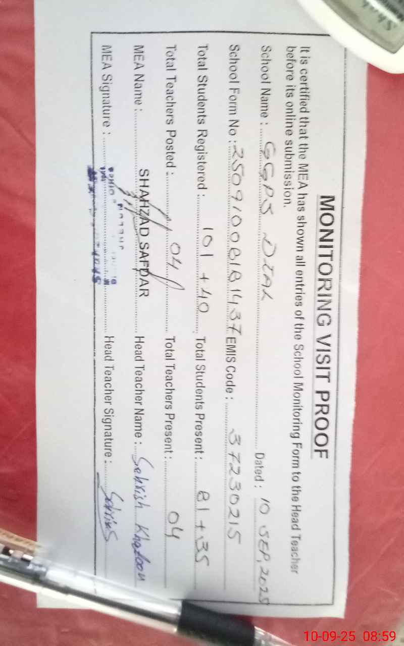 | Certified that this School was Inspected by the Undersigned MEA/DMO Today and the Information Stated Above is as Per Record. | |||||