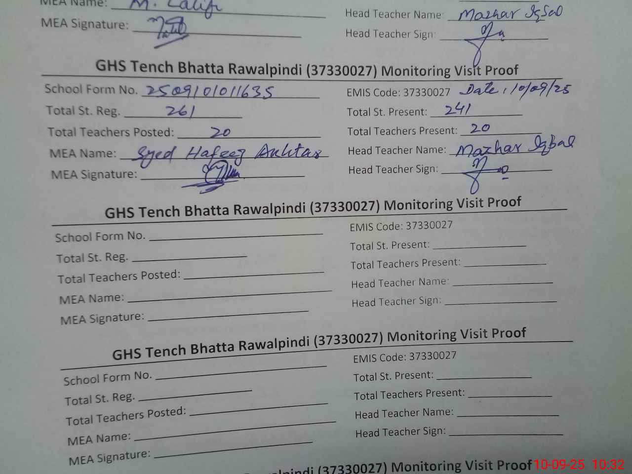 | EMIS Code: 37330027 | Name of School: GHS TENCH BHATTA | |||