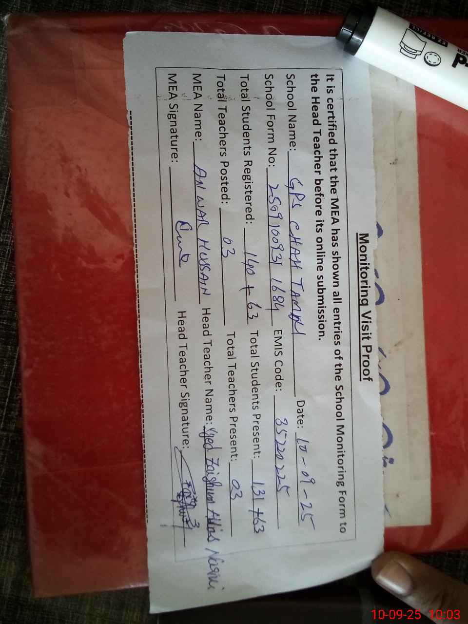 | EMIS Code: 35220225 | Name of School: GPS CHAH TAMOLI | |||
