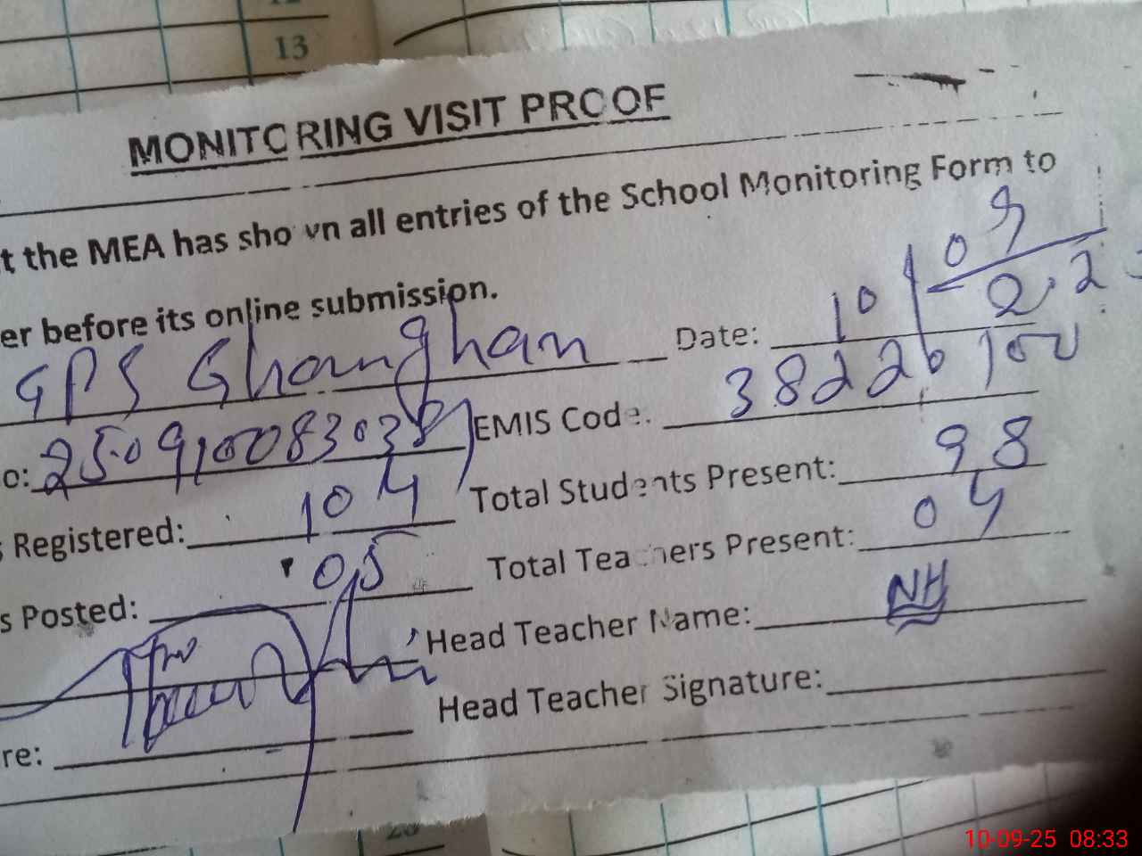 | EMIS Code: 38220100 | Name of School: GPS GHANGHAN | |||