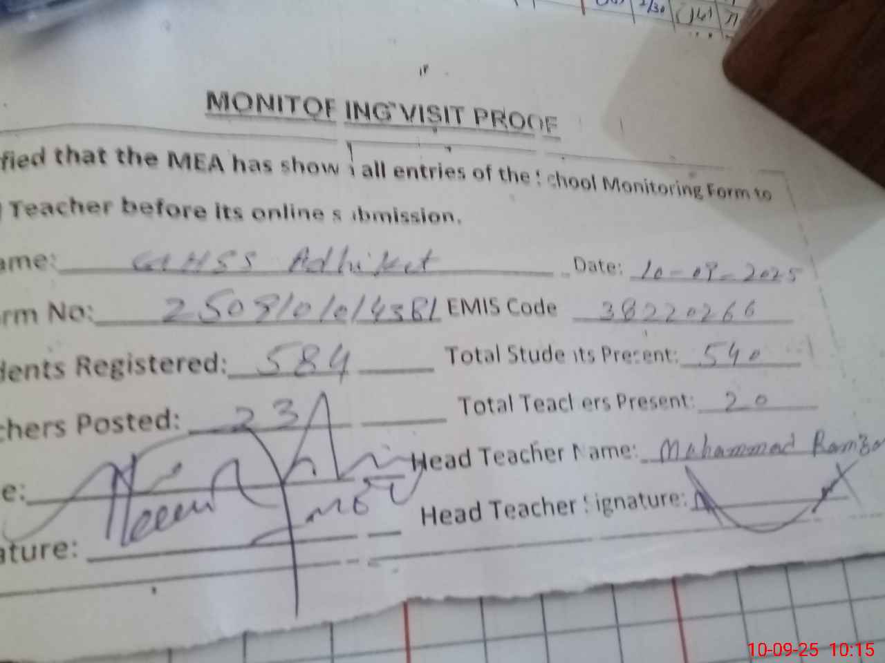 | EMIS Code: 38220266 | Name of School: GHSS ADHI KOT | |||