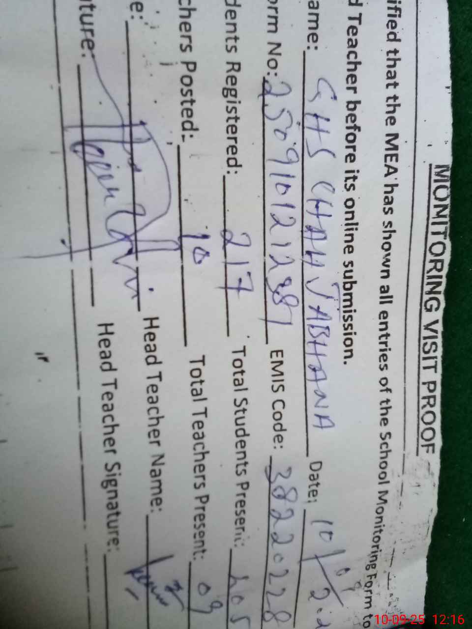 | Name: Mu**** Ka**** Designation: (School Headmaster's/Headmistress's) SST Phone/Cell Number: 03**** |