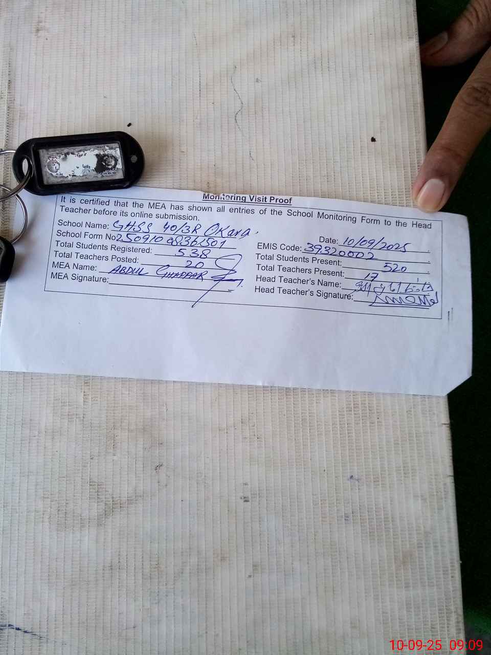 | EMIS Code: 39320002 | Name of School: GHSS 40/3.R OKARA | |||