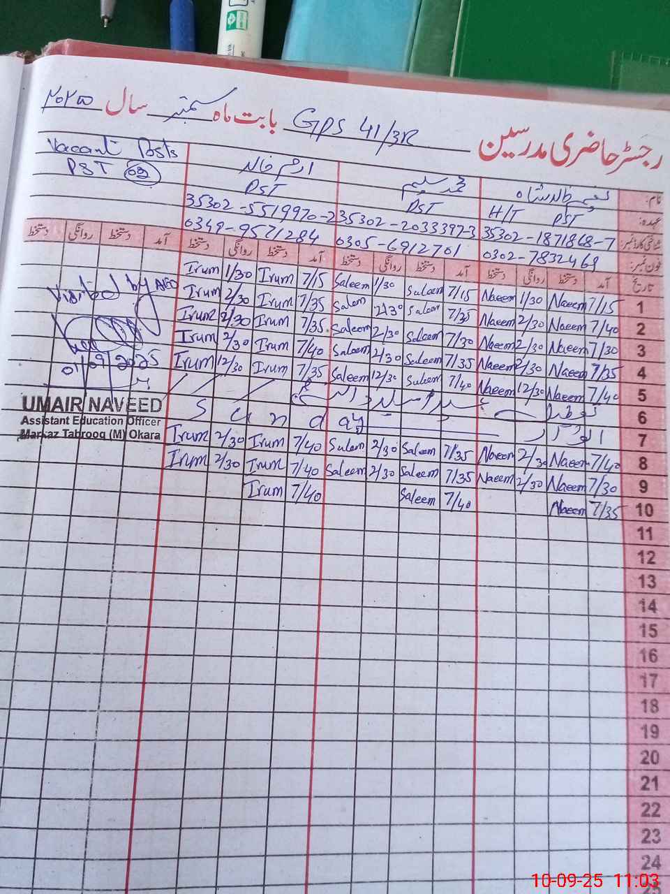 | Name: Na**** Kh**** Sh**** Designation: (School Headmaster's/Headmistress's) PST Phone/Cell Number: 03**** |