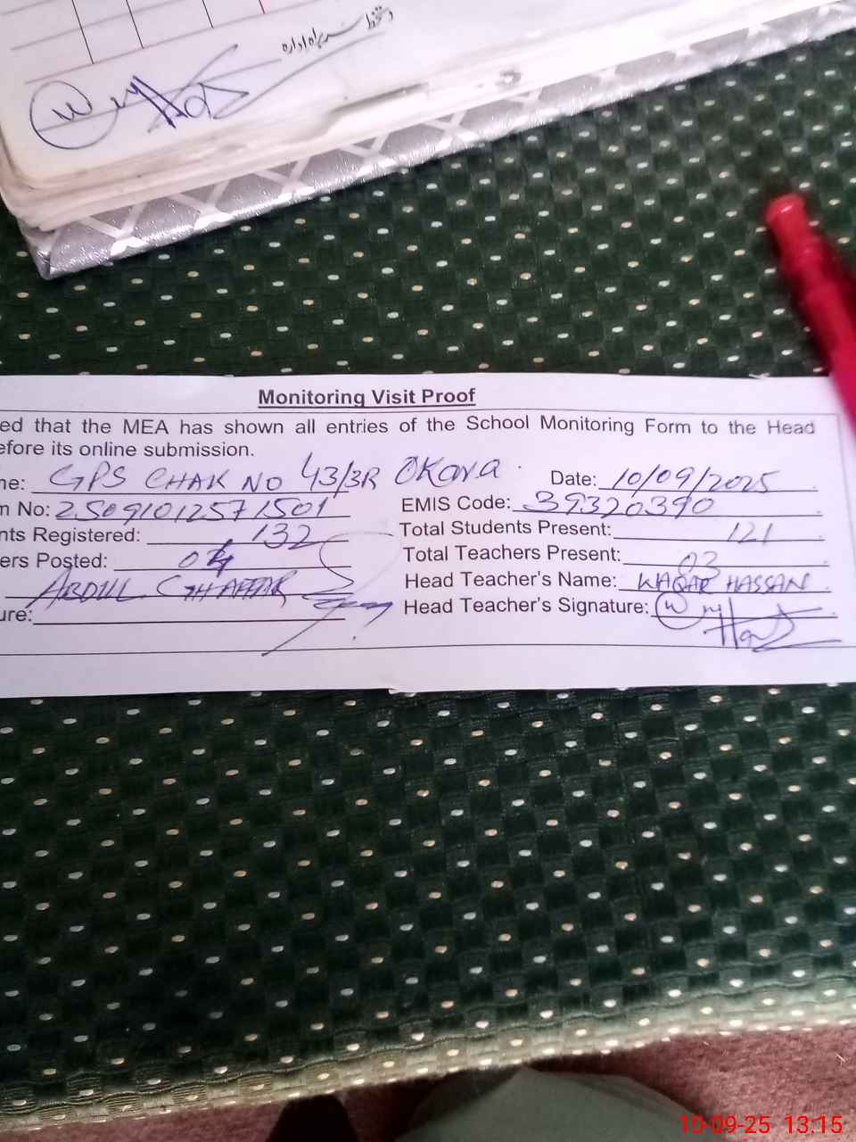 | EMIS Code: 39320390 | Name of School: GPS CHAK NO. 43/ 3-R | |||