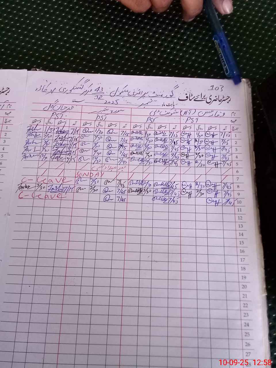 | Leave | Duty | Absent | Maternity | Medical | Ex- Pak |
