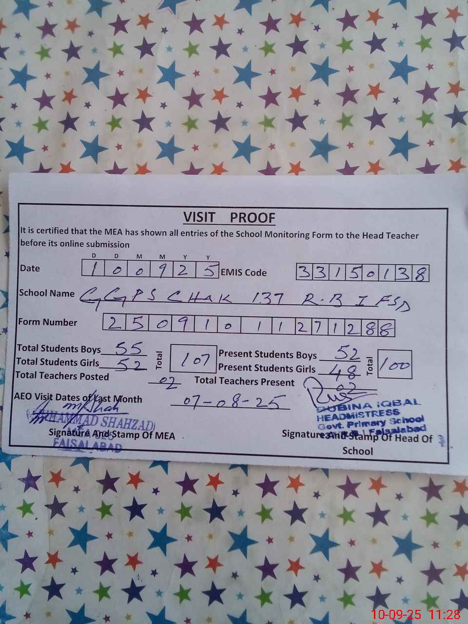 | EMIS Code: 33150138 | Name of School: GGPS CHAK 137 RB 1 | |||