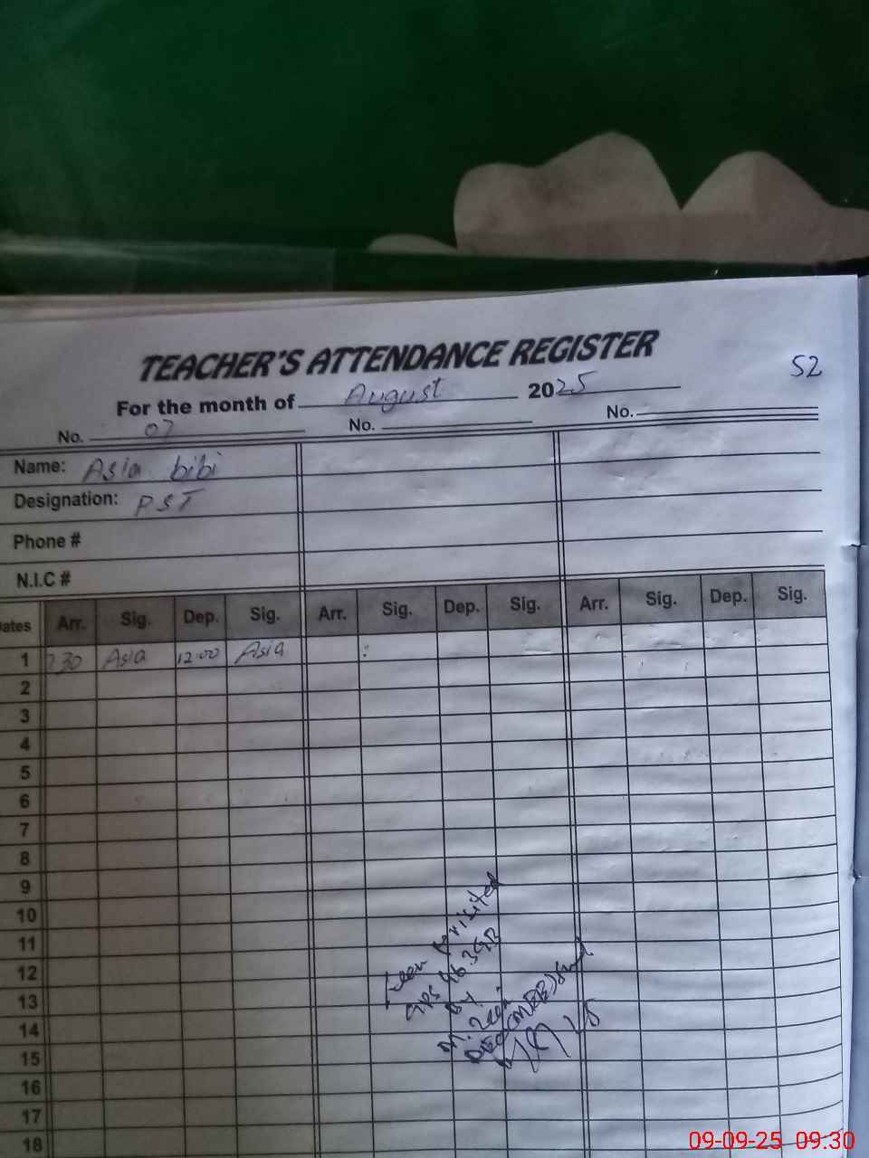 | Name: MU**** Da**** Designation: (School Headmaster's/Headmistress's) PST Phone/Cell Number: 03**** |