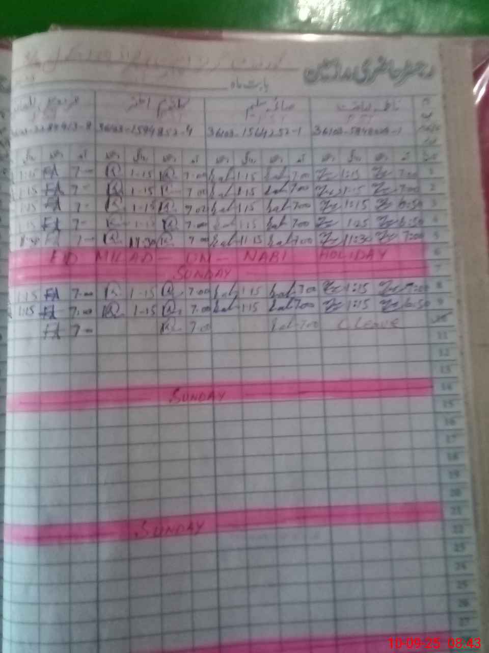 | CNIC | Full Name | Designation | R/C | Absence During Last Calender Month |