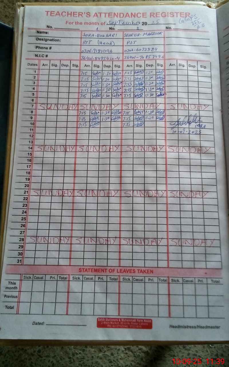 | Name: SE**** MA**** Designation: (School Headmaster's/Headmistress's) PST Phone/Cell Number: 03**** |