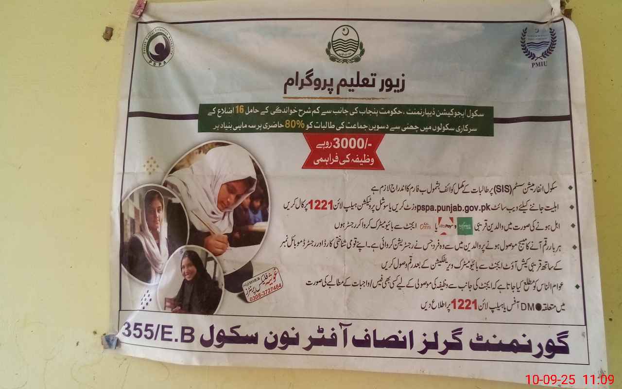 | District: PAKPATTAN | Tehsil: ARIFWALA | Markaz: MUHAMMAD NAGAR 2 - FEMALE | Level: Primary | |