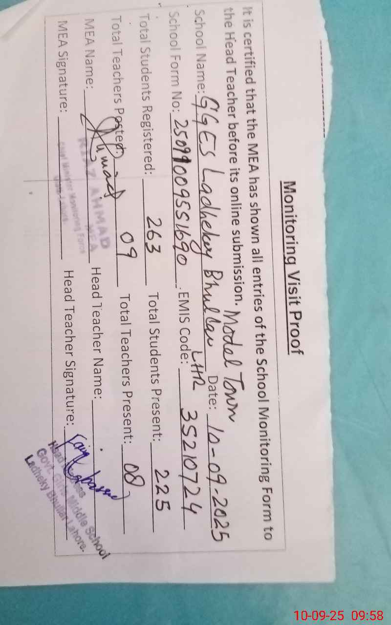 | Certified that this School was Inspected by the Undersigned MEA/DMO Today and the Information Stated Above is as Per Record. | |||||
