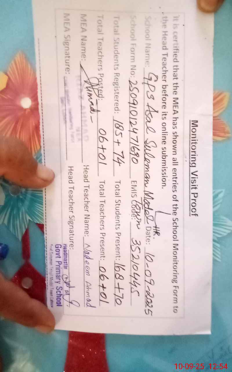 | EMIS Code: 35210445 | Name of School: GPS ASIL SULEMAN | |||
