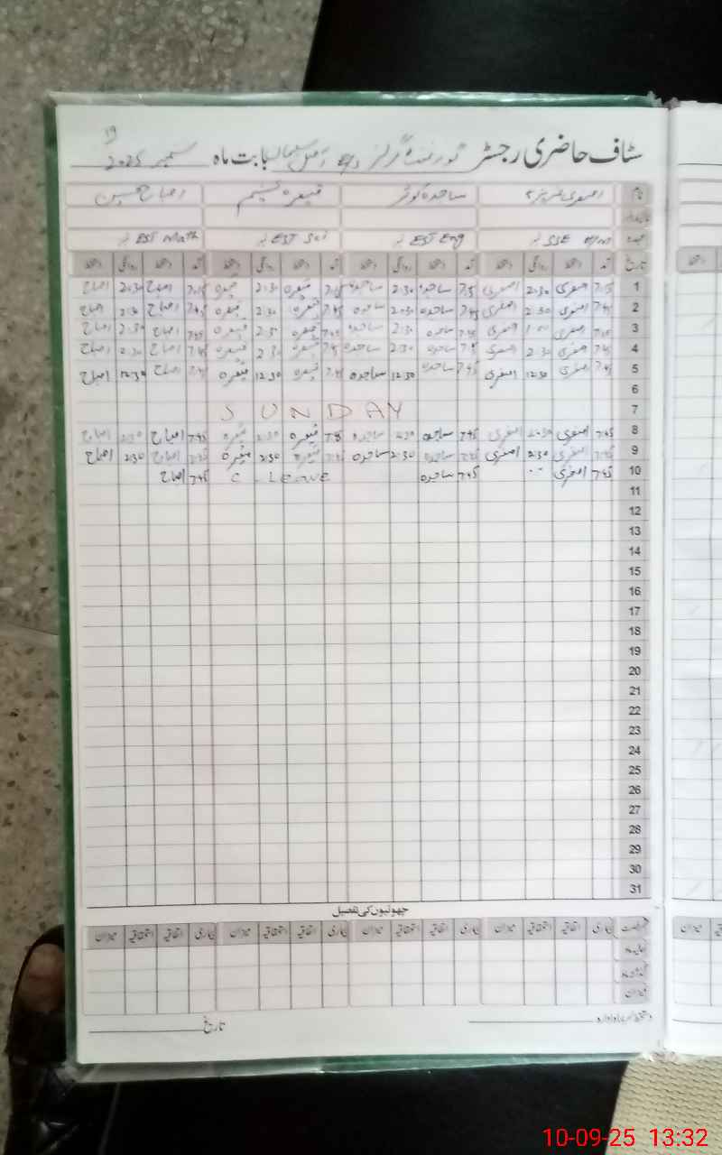 | CNIC | Full Name | Designation | R/C | Absence During Last Calender Month |