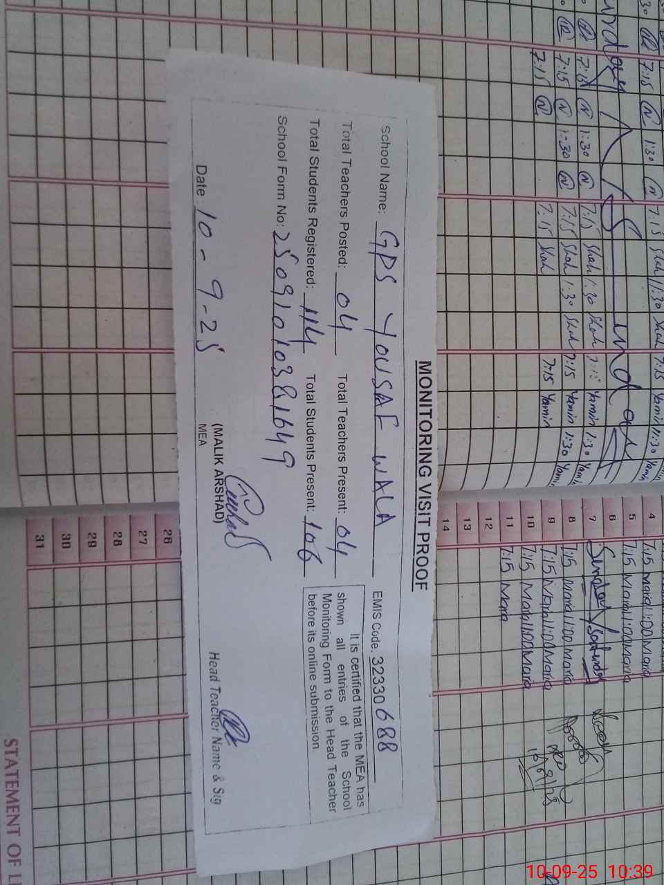| EMIS Code: 32330688 | Name of School: GPS YOUSAF WALA | |||