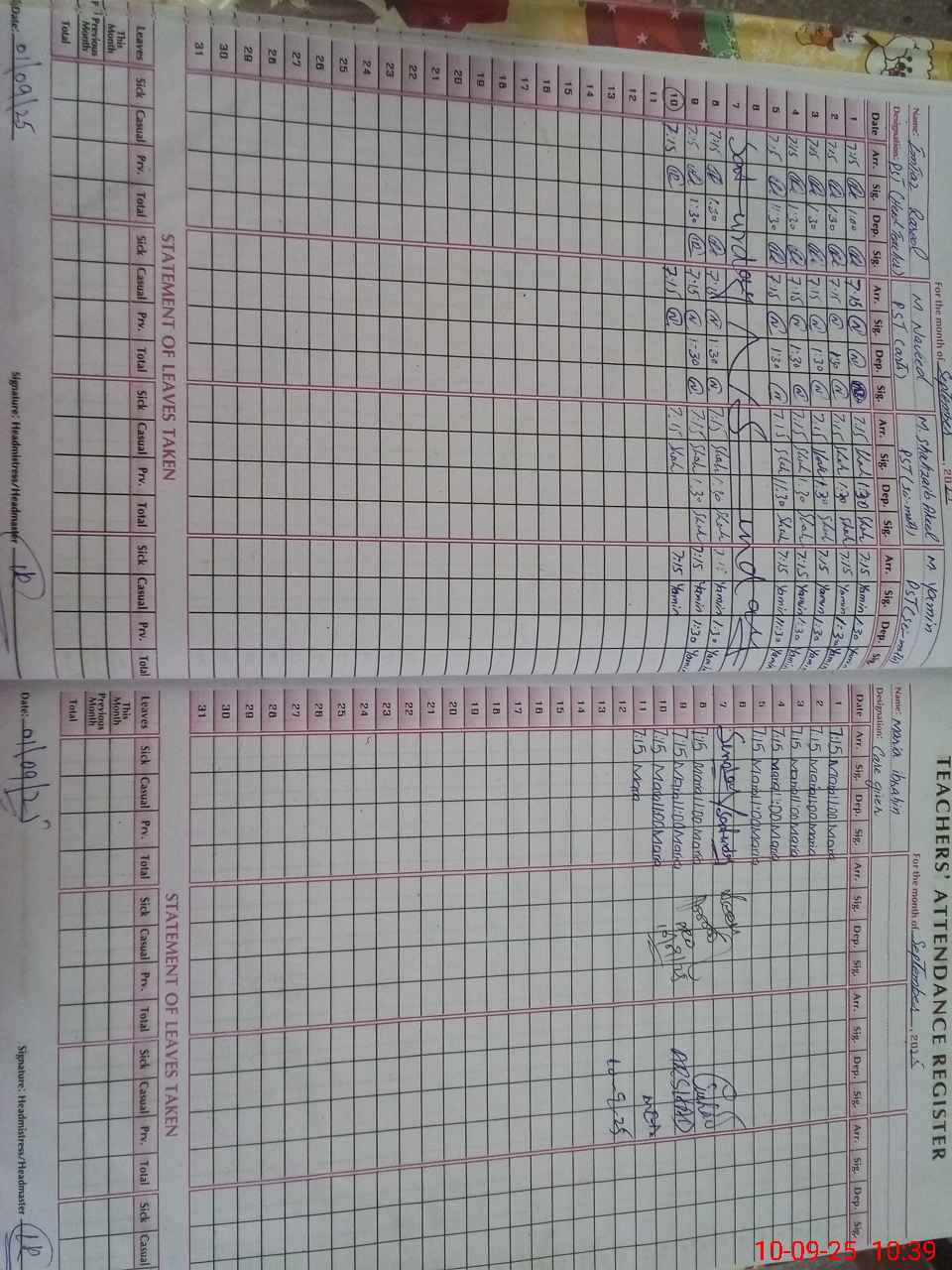 | No. of Students Present - Male | 10 | 0 | 9 | 10 | 9 | 3 | 5 | 5 | 51 | |||||||