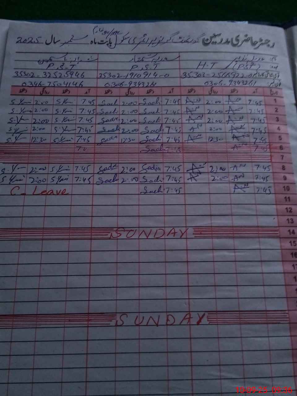 | CNIC | Full Name | Designation | R/C | Absence During Last Calender Month |