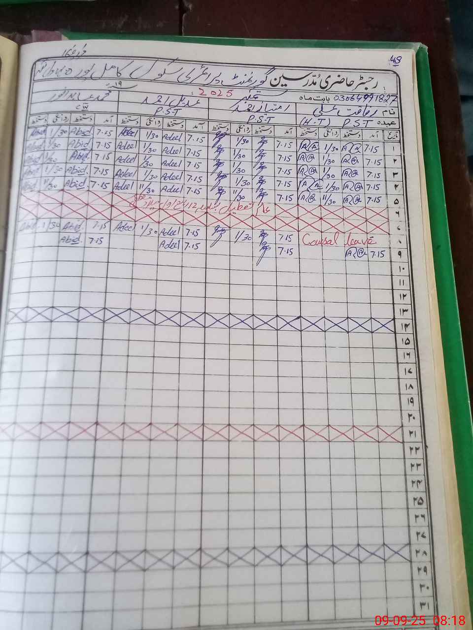 | Name: RA**** AL**** Designation: (School Headmaster's/Headmistress's) PST Phone/Cell Number: 03**** |