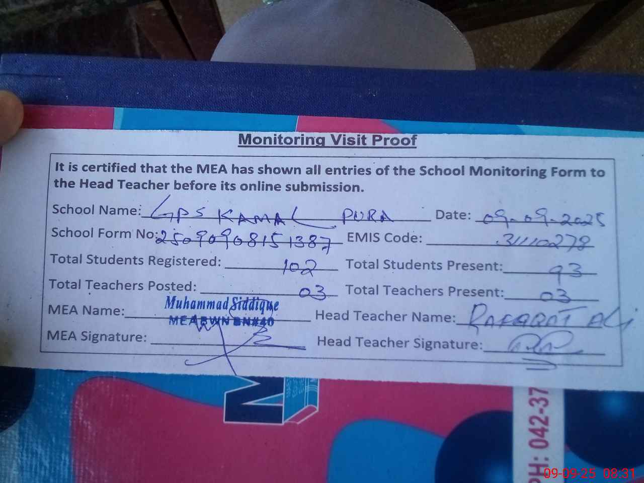 | EMIS Code: 31110278 | Name of School: GPS KAMAL PURA | |||