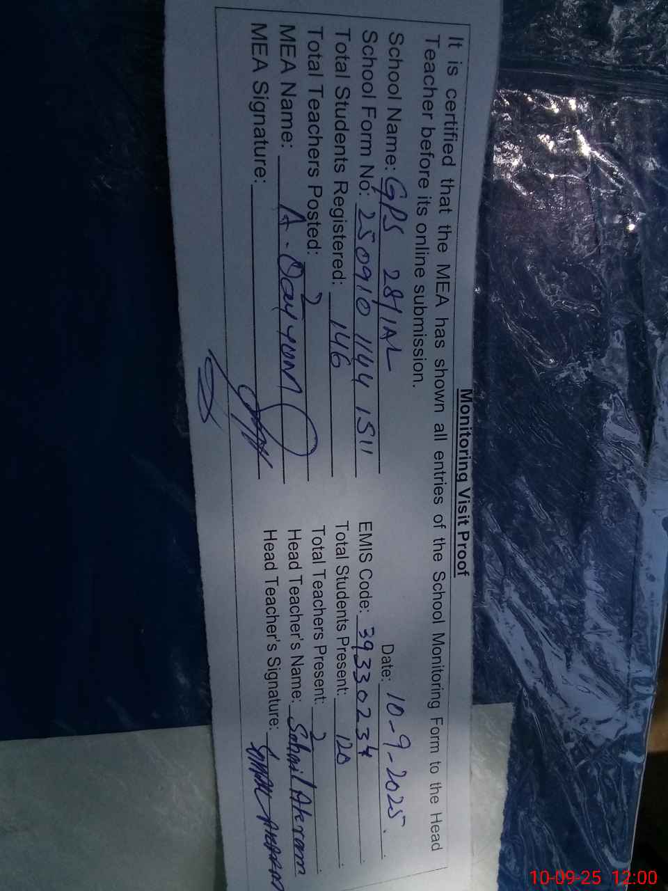 | EMIS Code: 39330234 | Name of School: GPS CHAK 28/1-AL | |||