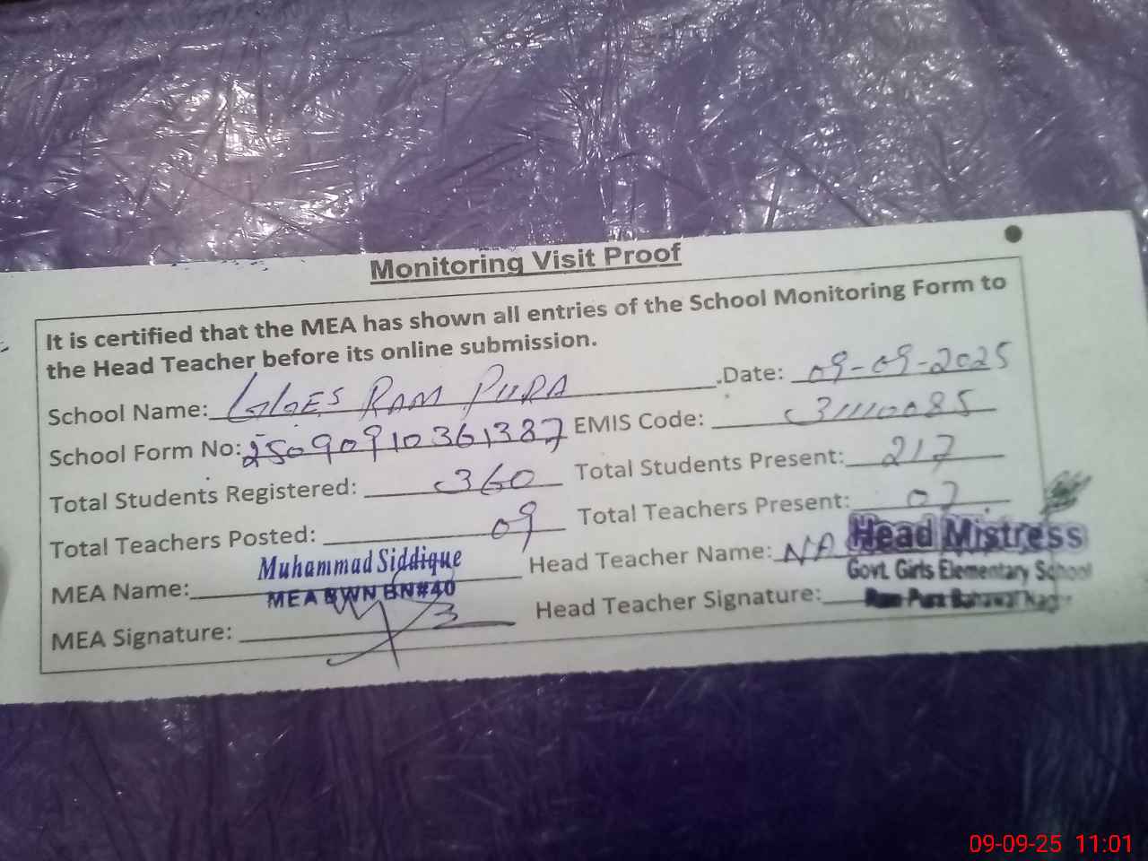 | EMIS Code: 31110085 | Name of School: GGES RAM PURA (BWN) | |||