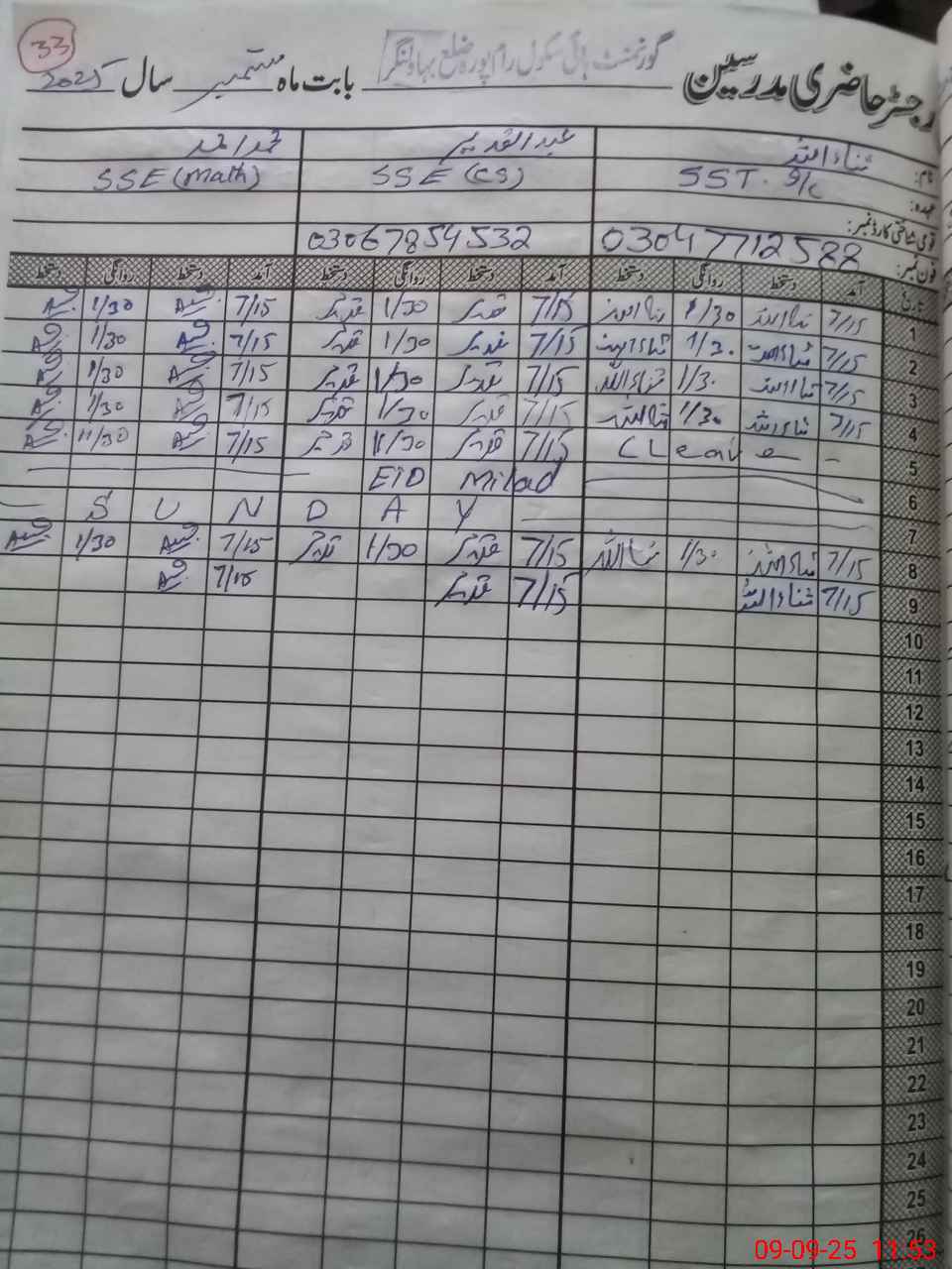 | Name: Sa**** Designation: (School Headmaster's/Headmistress's) SSt Phone/Cell Number: 03**** |