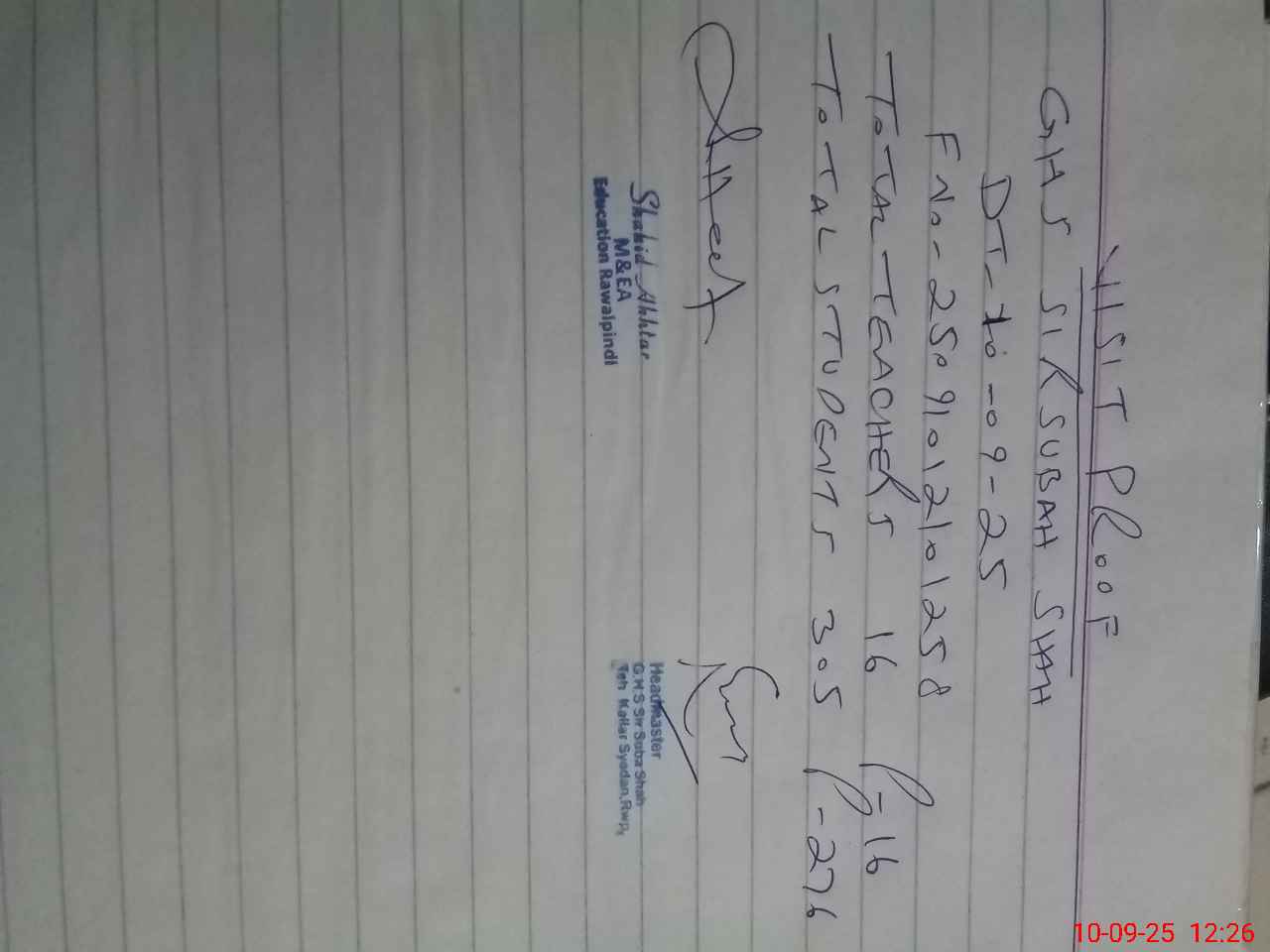 | Name: Ak**** Ah**** Designation: (School Headmaster's/Headmistress's) SST Phone/Cell Number: 03**** |