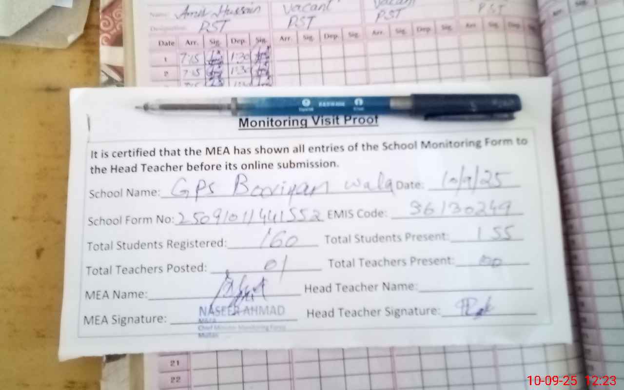 | EMIS Code: 36130249 | Name of School: GPS BORIAN WALA | |||
