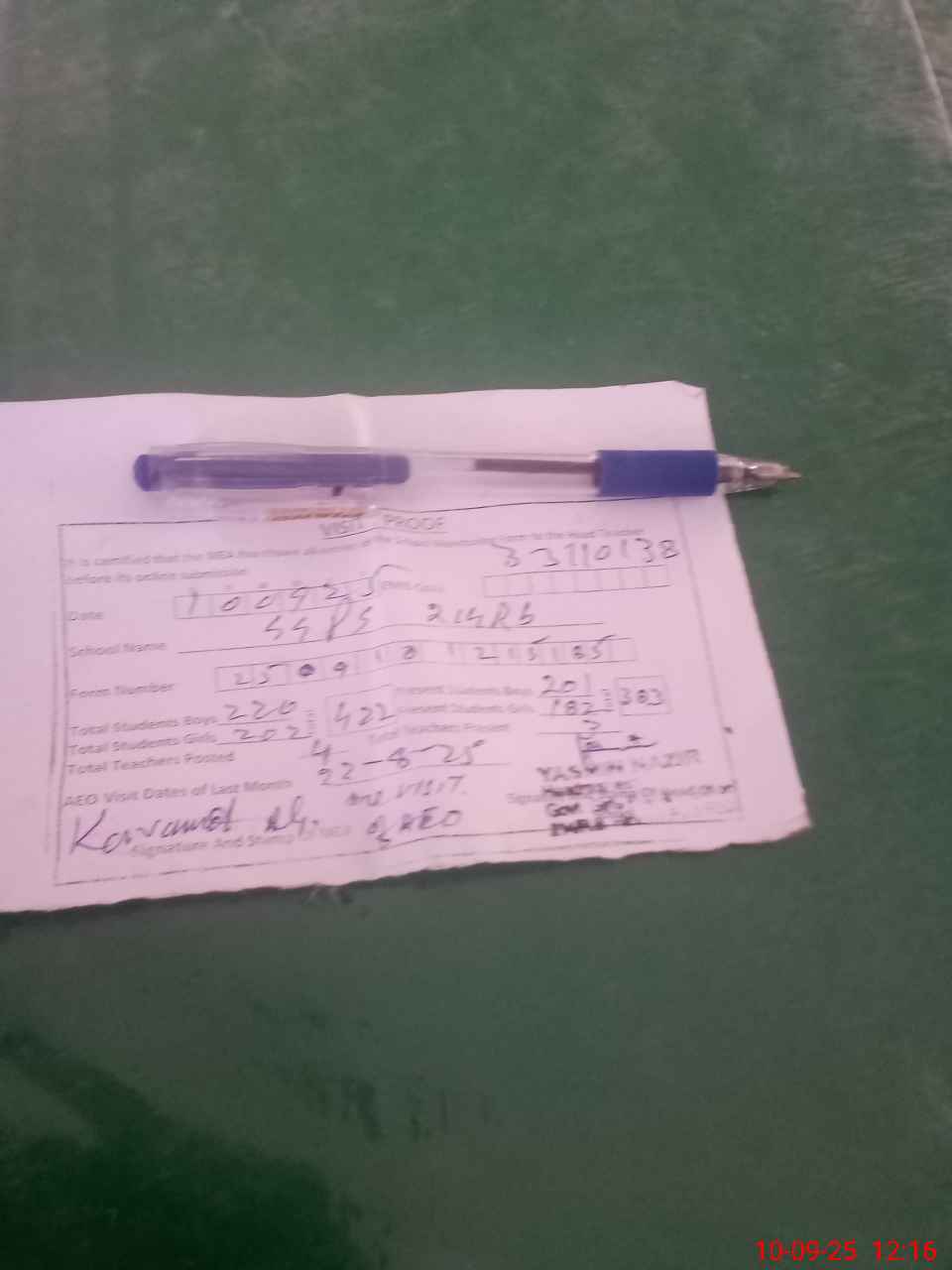 | Attendance Register | Head Teacher | MEA with School | Visit Proof |