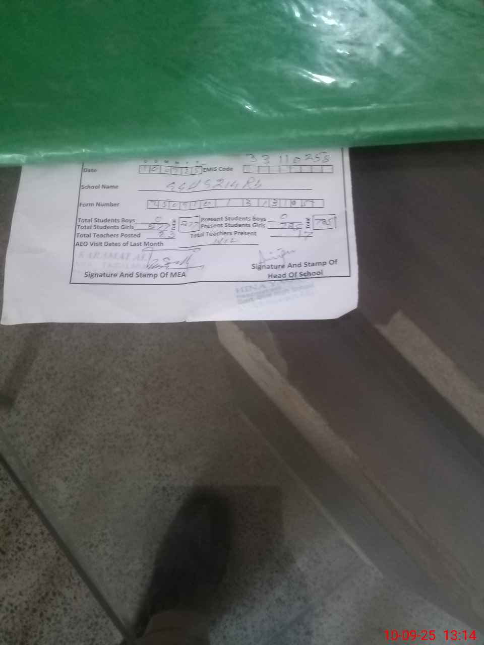 | Certified that this School was Inspected by the Undersigned MEA/DMO Today and the Information Stated Above is as Per Record. | |||||