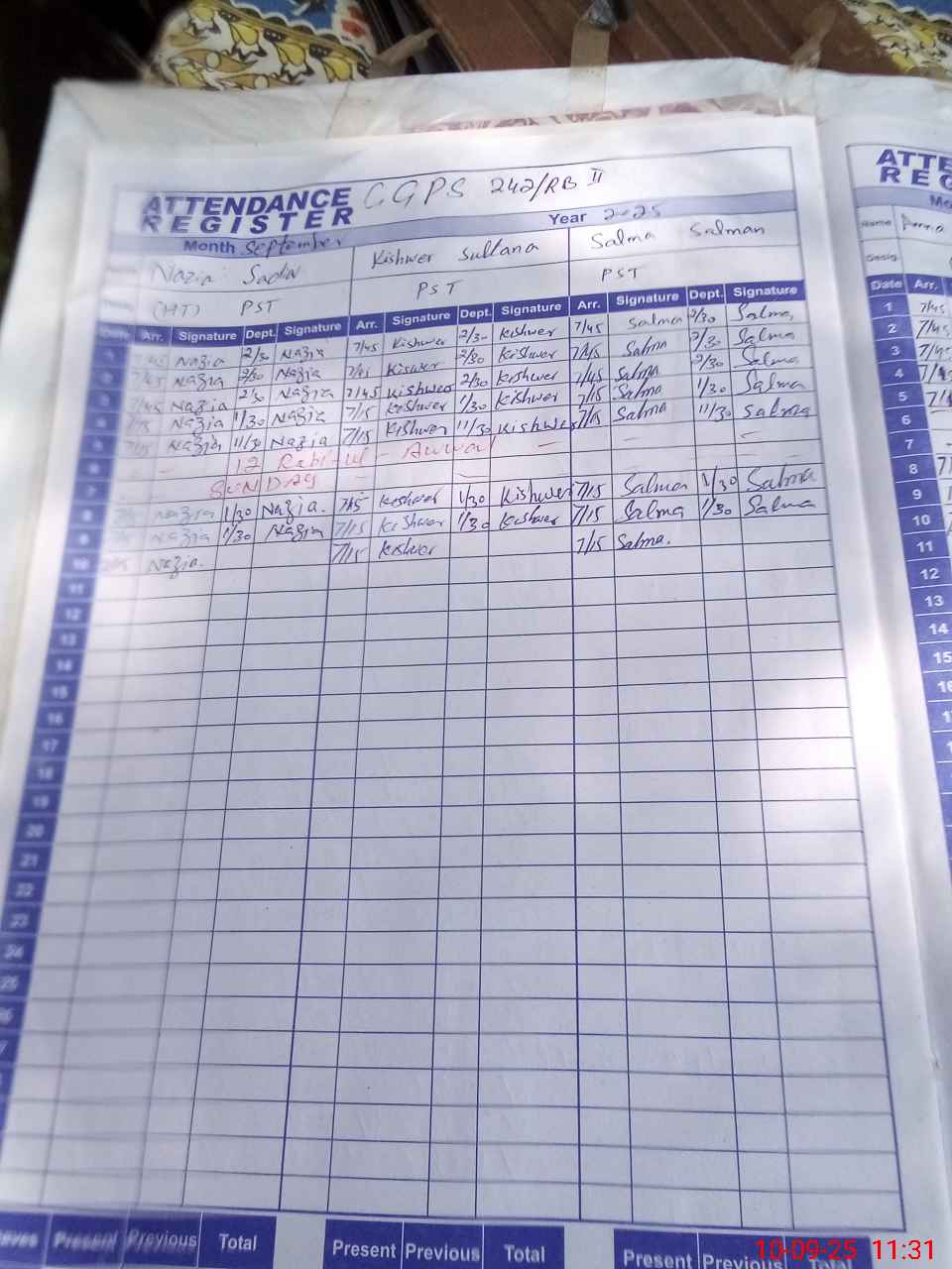 | No. of Students Present - Female | 9 | 0 | 18 | 21 | 31 | 20 | 24 | 19 | 142 | |||||||