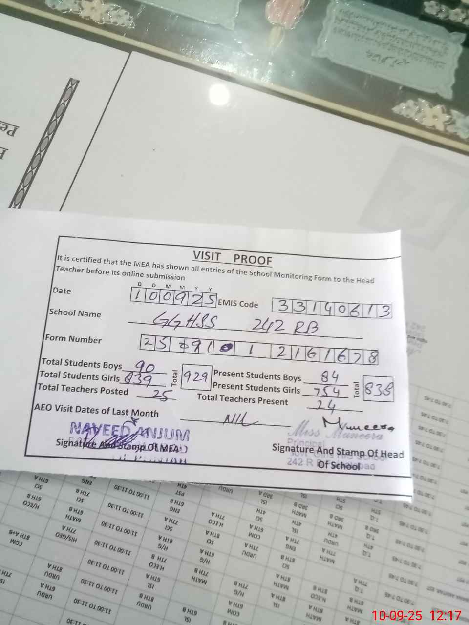 | EMIS Code: 33140613 | Name of School: GGHSS CHAK 242 RB FSD | |||