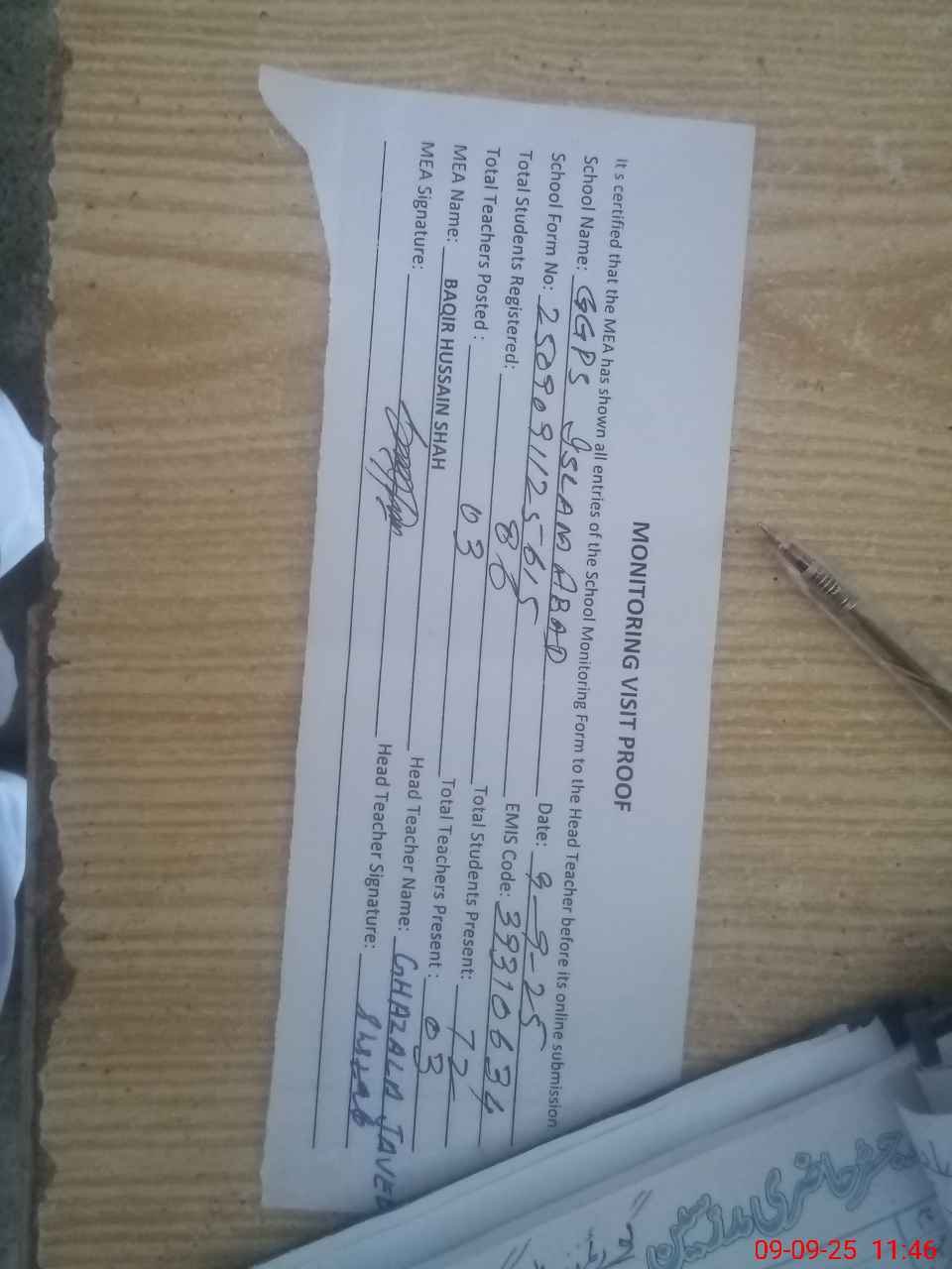 | EMIS Code: 39310634 | Name of School: GGPS ISLAM ABAD | |||