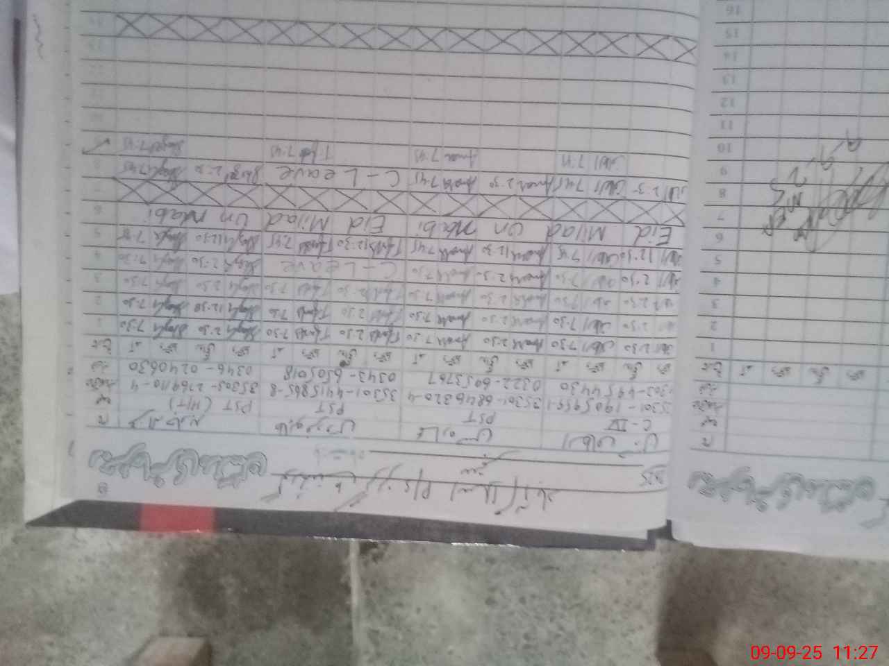 | Monitoring Date: 09-09-2025 | Start Time: 09-09-2025 11:25 AM | End Time: 09-09-2025 11:46 AM | Name of MEA: BA**** HU**** SH**** | |