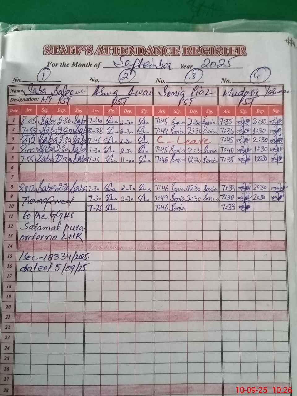| District: LAHORE | Tehsil: SHALIMAR | Markaz: SHALIMAR-FEMALE | Level: Primary | |
