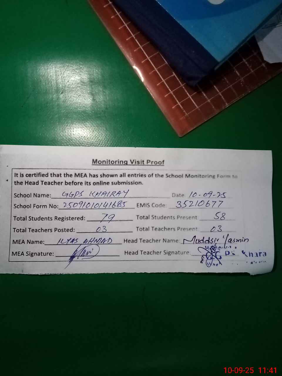 | EMIS Code: 35210677 | Name of School: GGPS KHAIRAY | |||
