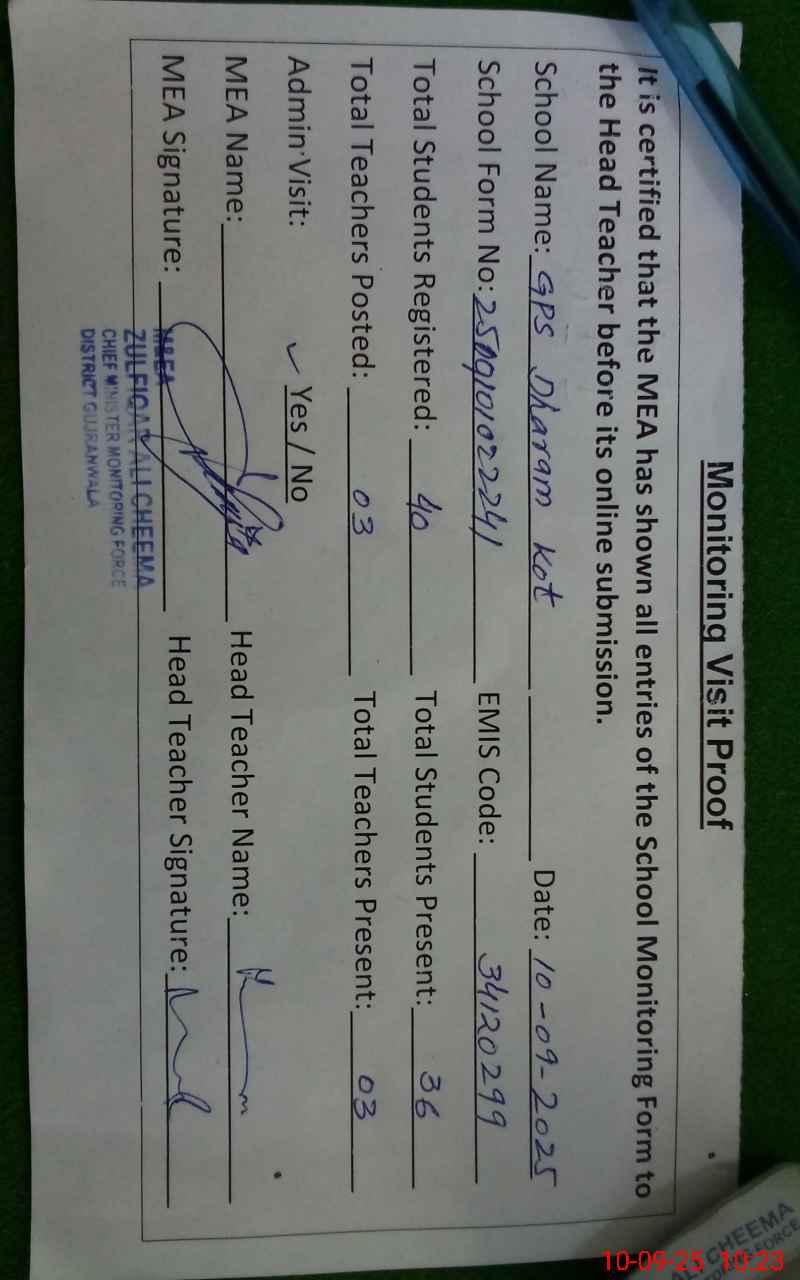 | EMIS Code: 34120299 | Name of School: GPS DHARAM KOT | |||