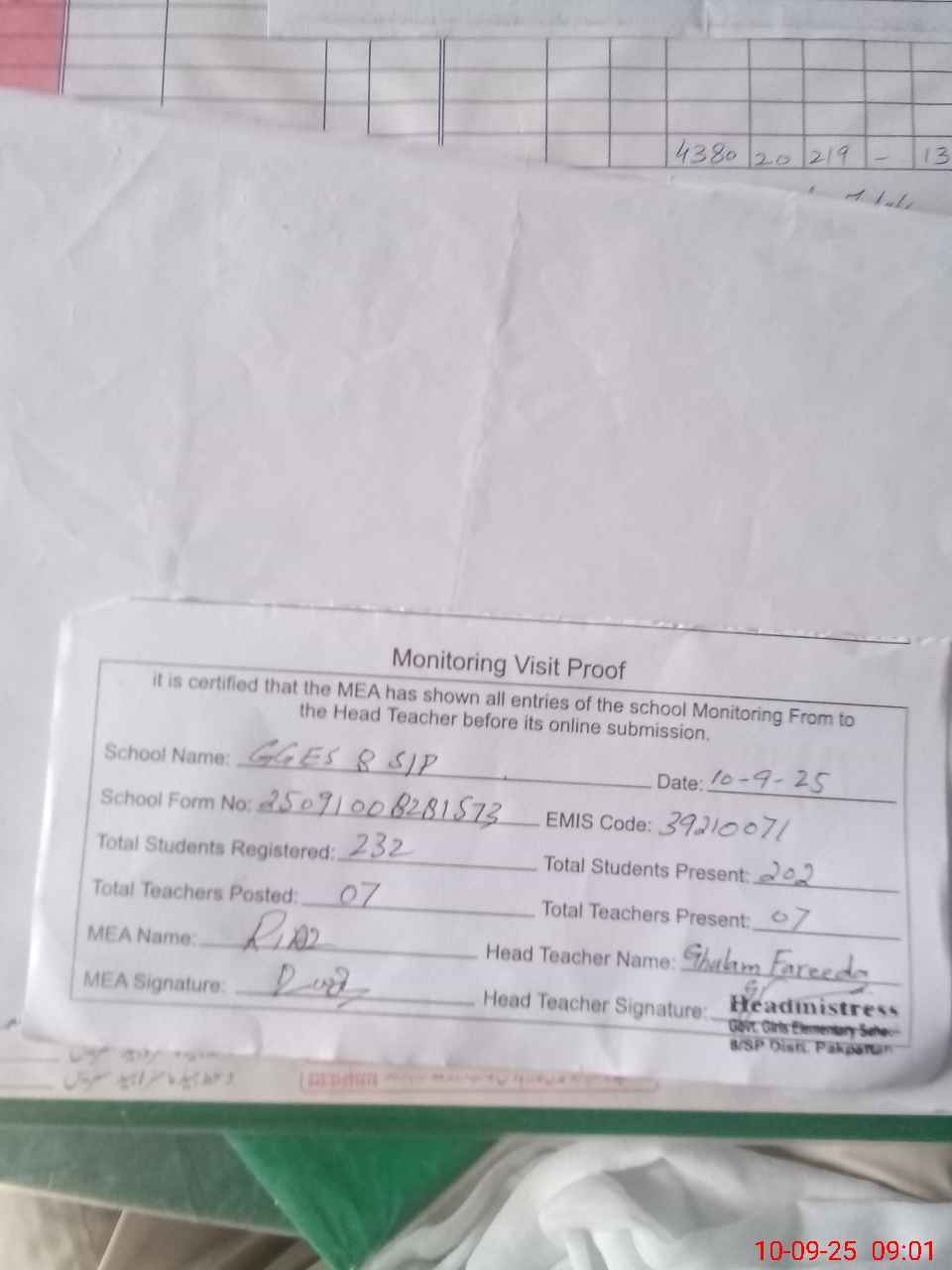 | Name: Gh**** Fa**** Designation: (School Headmaster's/Headmistress's) SST Science Phone/Cell Number: 03**** |