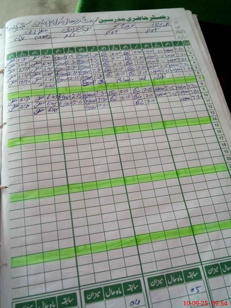 | CNIC | Full Name | Designation | R/C | Absence During Last Calender Month |