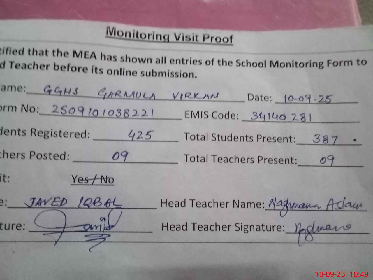 | EMIS Code: 34140281 | Name of School: GGHS GARMULA VIRKAN | |||