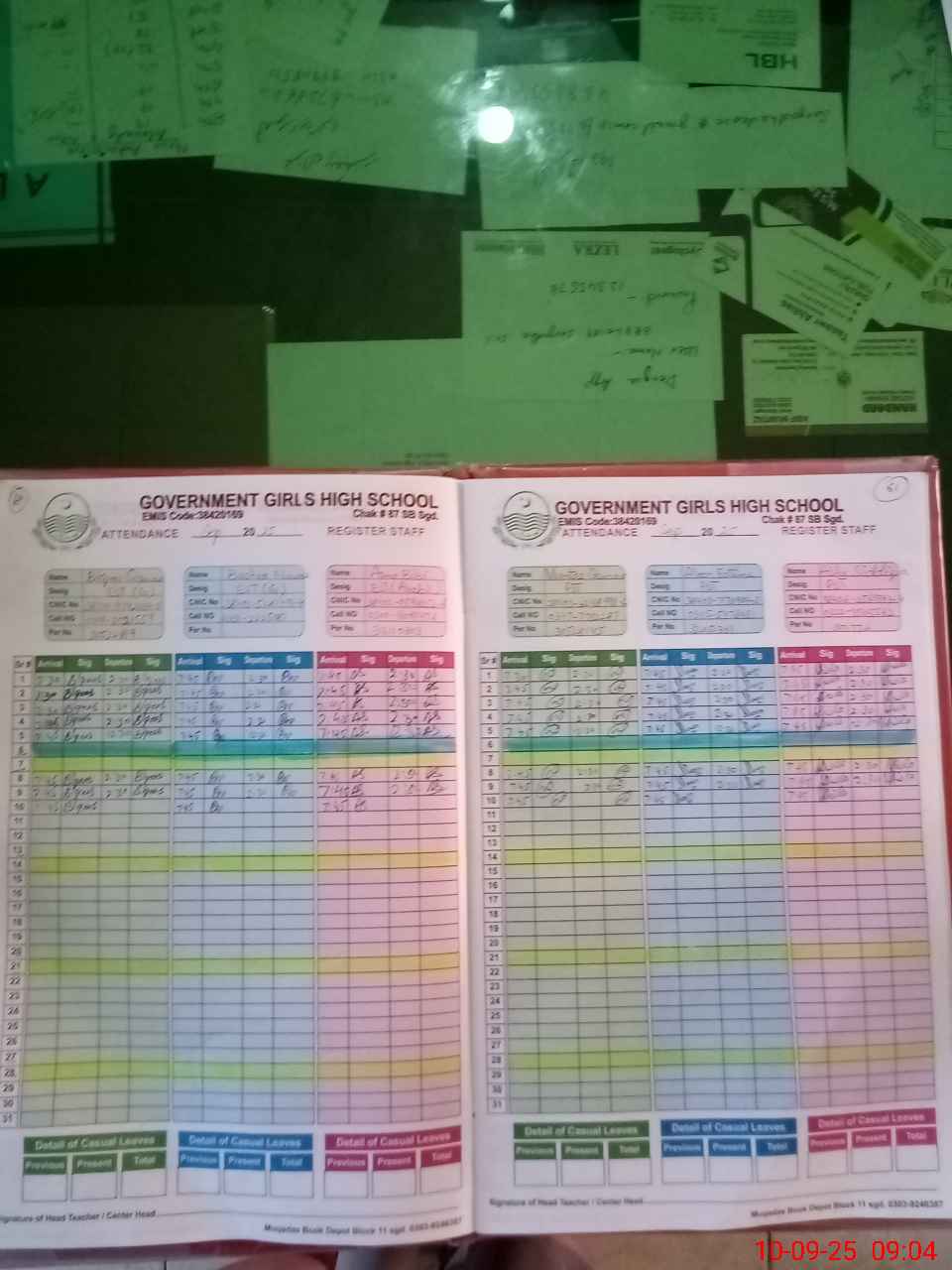 | CNIC | Full Name | Designation | R/C | Absence During Last Calender Month |