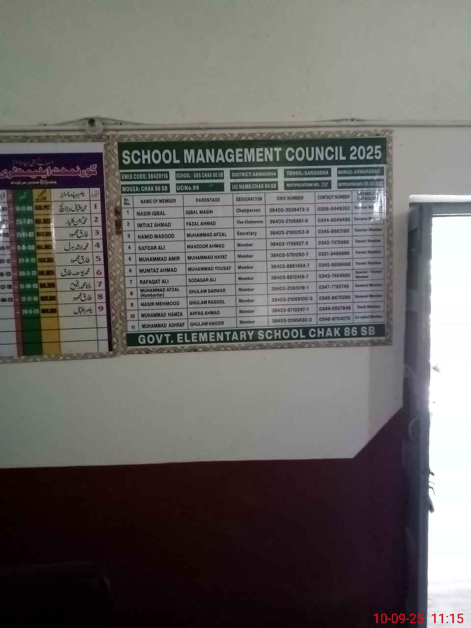 | EMIS Code: 38420116 | Name of School: GES CHAK NO.86 SB | |||