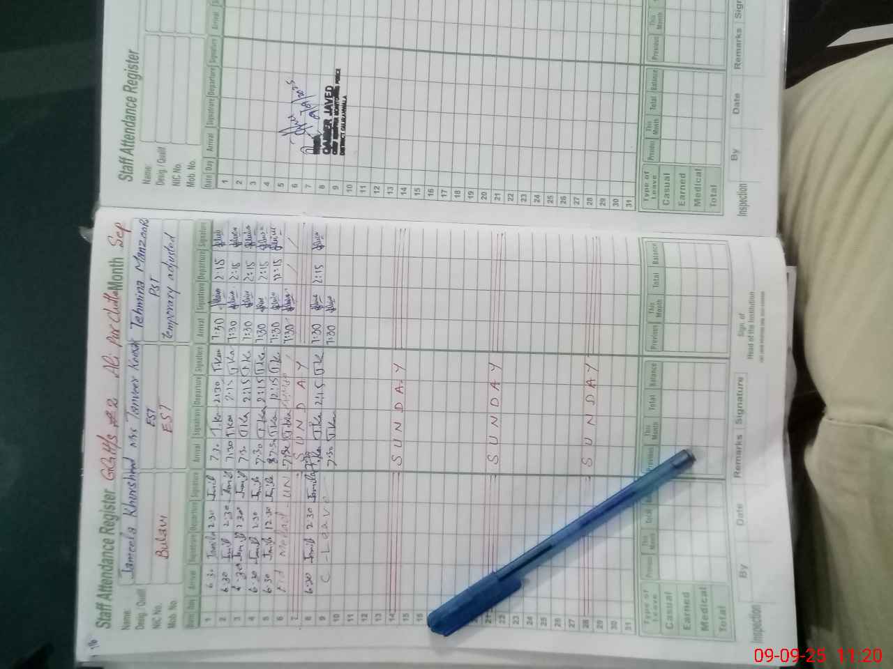 | CNIC | Full Name | Designation | R/C | Absence During Last Calender Month |