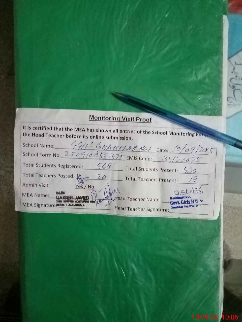 | EMIS Code: 34120075 | Name of School: GGHS GHAKHAR NO.1 | |||