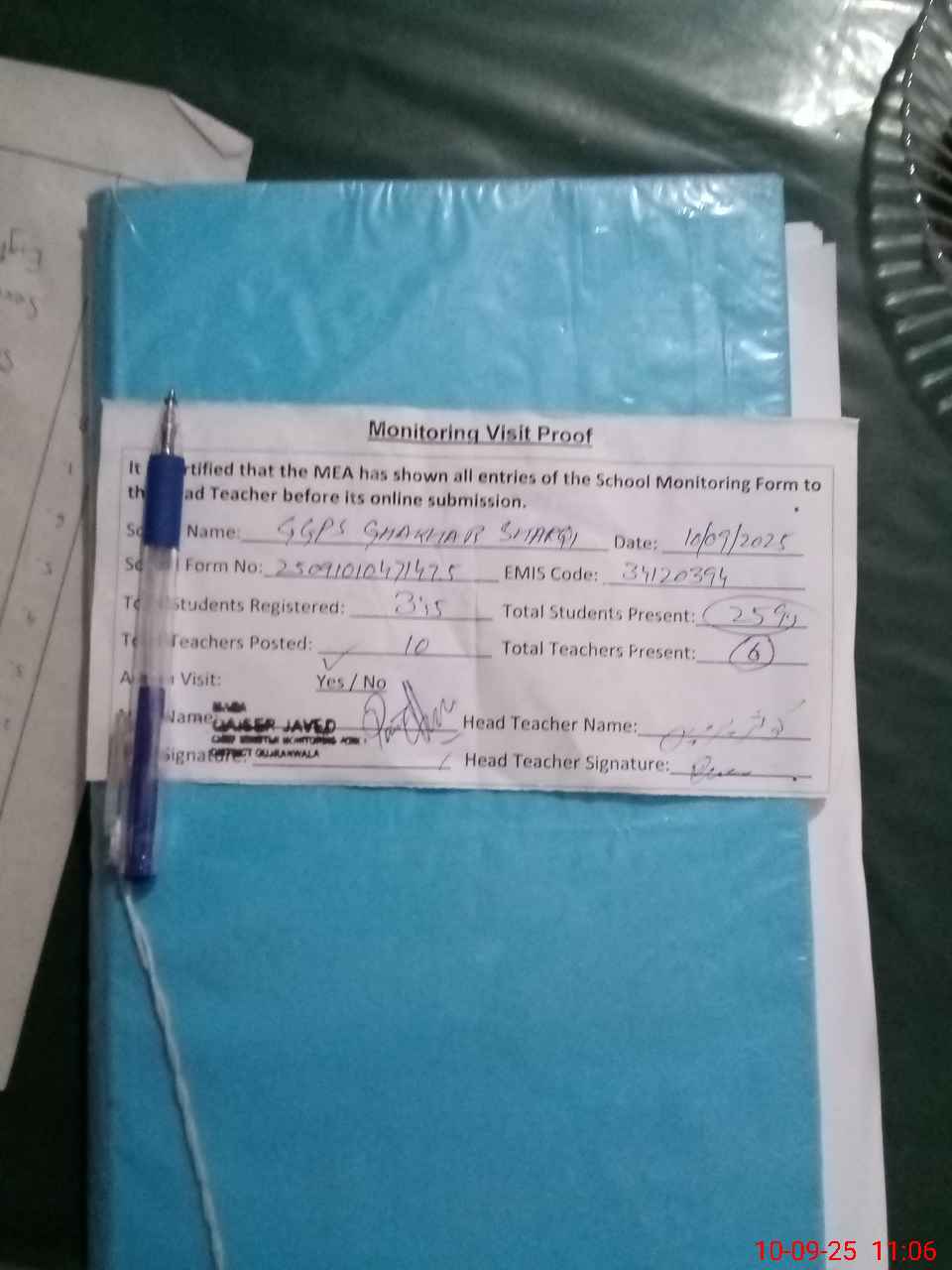 | EMIS Code: 34120394 | Name of School: GGPS GHAKHAR SHARQI | |||