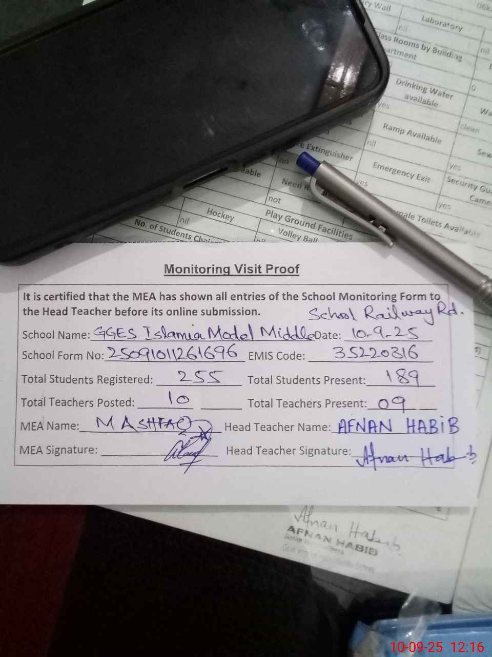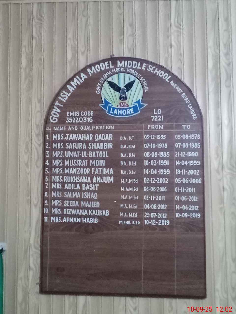 | EMIS Code: 35220316 | Name of School: GGES ISLAMIA MODEL MIDDLE SCHOOL, RAILWAY ROAD, LAHORE | |||