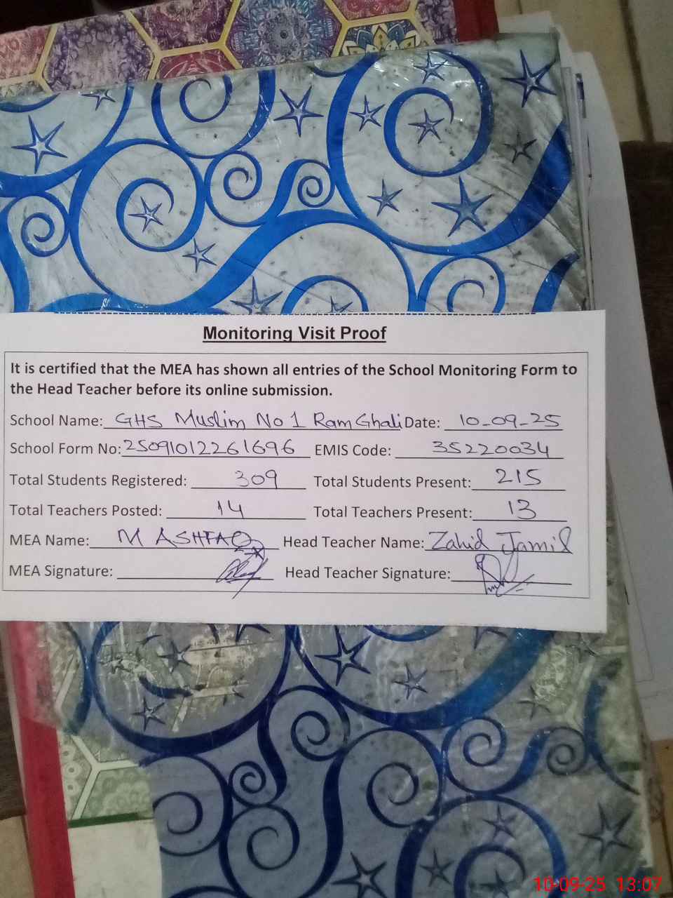 | EMIS Code: 35220034 | Name of School: GHS MUSLIM NO. 1 RAM GHALI | |||