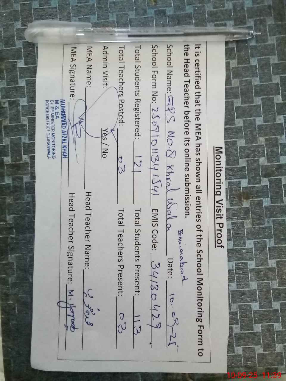 | EMIS Code: 34130429 | Name of School: GPS No.8 Khral Wala EMINABAD | |||