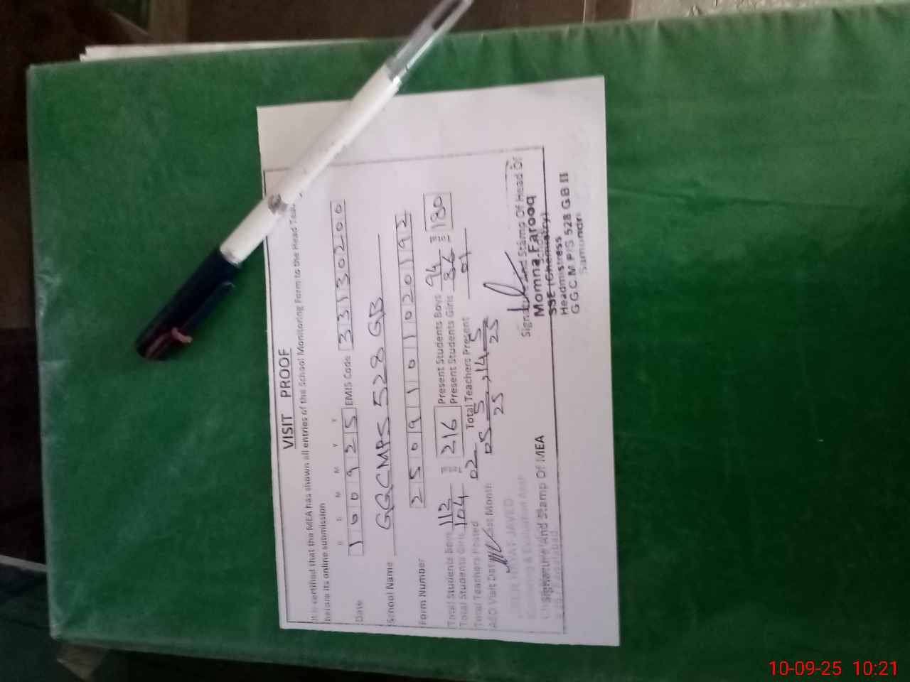 | Attendance Register | Head Teacher | MEA with School | Visit Proof |