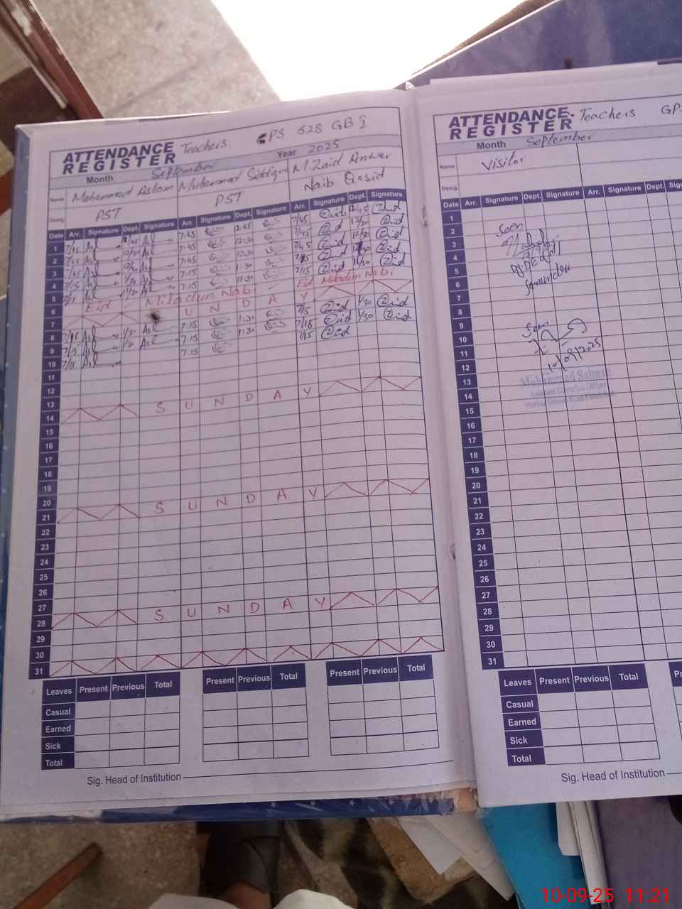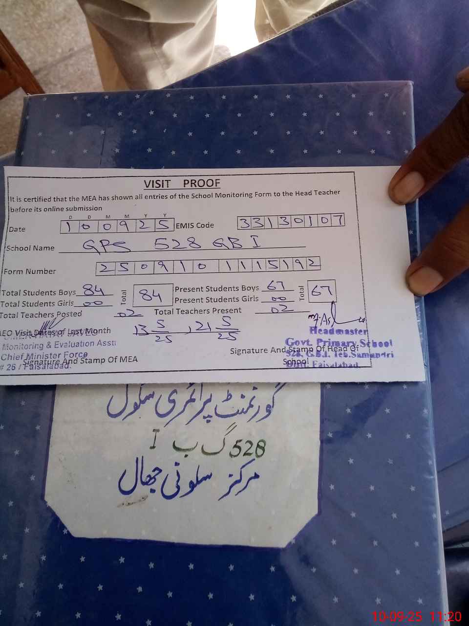 | Attendance Register | Head Teacher | MEA with School | Visit Proof |